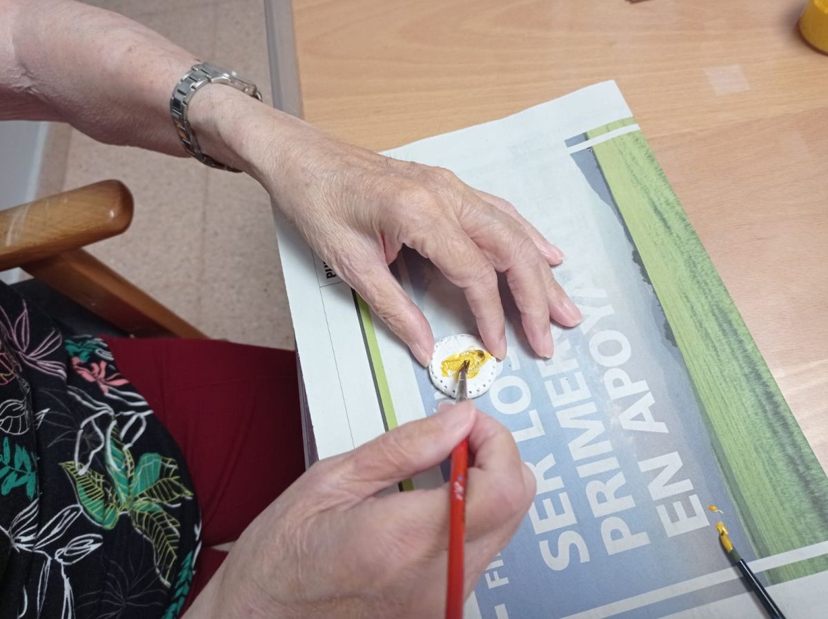 Hoy pre – festivo con ayuda de nuestra terapeuta hemos realizado una bonitas medallas para nuestros residentes, trabajando la coordinación óculo – manual mientras escuchamos unas Joticas Aragonesas.